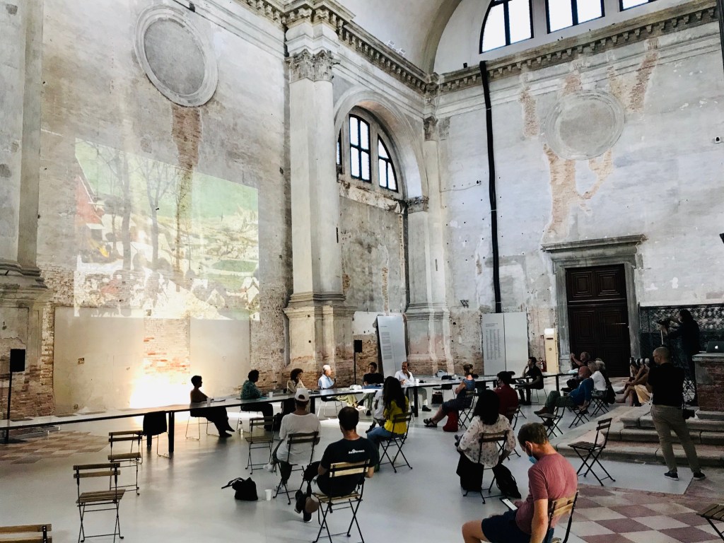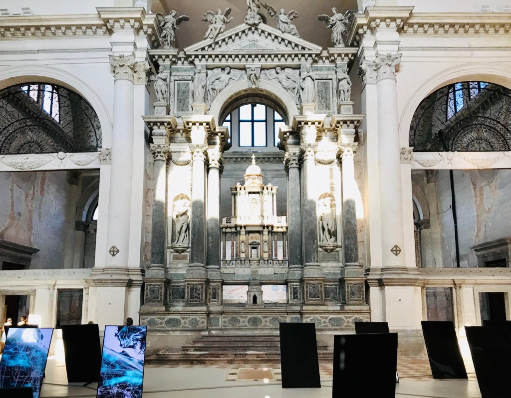 “Territorial Agency: Oceans in Transformation” è il titolo dello spazio espositivo visibile dal 27 agosto al 29 novembre 2020 all’interno della chiesa; vanno dritte al punto le parole riportate sui banner espositivi della mostra e credo meritino un giusto tempo di forte riflessione: