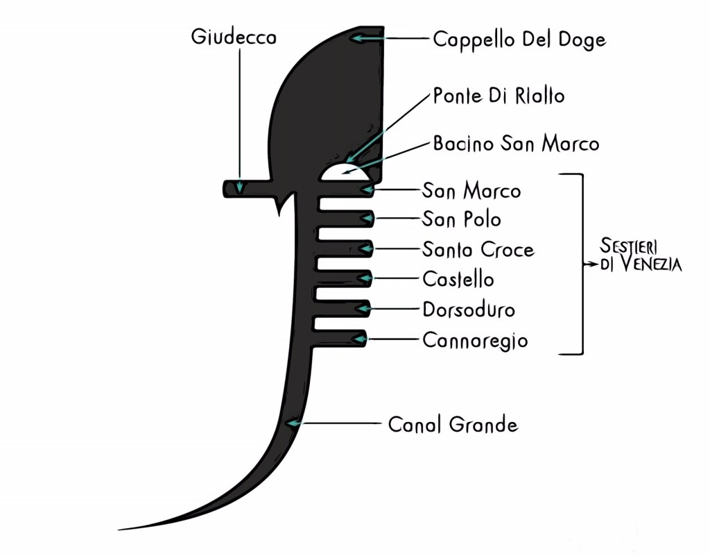 Il “fero da mar” ci racconta inoltre com’è fatta la città: i suoi sei denti rappresentano i sei sestieri che dividono Venezia, il dente rivolto all’indietro è l’isola della Giudecca, mentre la punta più larga simboleggia il cappello del Doge con sotto un archetto per il Ponte di Rialto; infine, la forma ad “S” dell’intera struttura rappresenta il percorso più bello al mondo: il Canal Grande.
